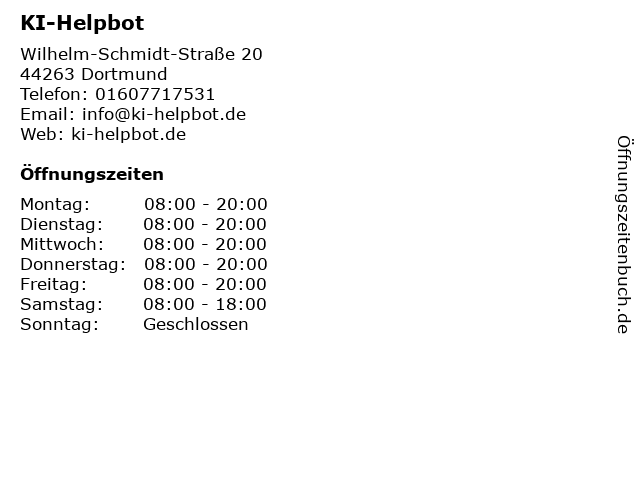| Öffnungszeiten KI-Helpbot in Dortmund anzeigen | |