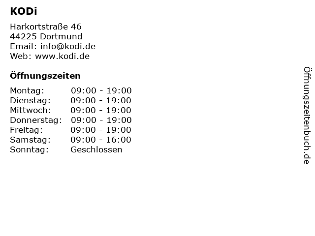 | Öffnungszeiten KODi in Dortmund anzeigen | |
