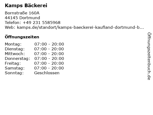 | Öffnungszeiten Kamps Bäckerei in Dortmund anzeigen | |
