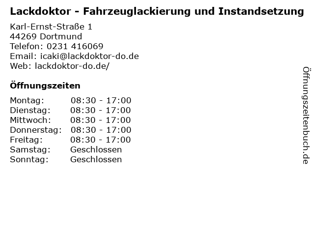 3 Peter Smolka KFZ-Meister, Peter Berger KFZ-Instandsetzung (Entfernung: 6,03 km) Herderstr. 18, 44147 Dortmund 5 Giesselbach Fahrzeuglackierung & Karosseriebau GmbH (Entfernung: 14,10 km) Hauptstraße 16, 58455 Witten 6 |