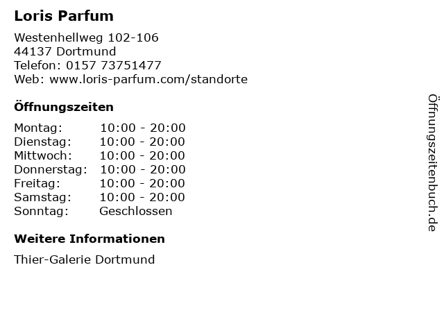 | Öffnungszeiten Loris Parfum in Dortmund anzeigen | |