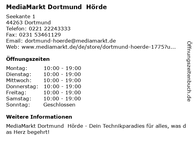 Öffnungszeiten MediaMarkt Dortmund Hörde in Dortmund anzeigen | |