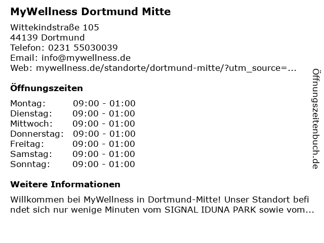 | Öffnungszeiten MyWellness Dortmund Mitte in Dortmund anzeigen | |