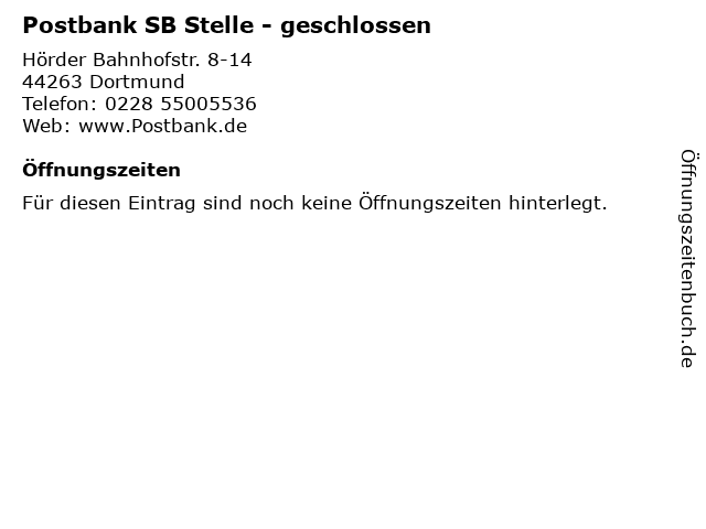 Öffnungszeiten Postbank SB Stelle - geschlossen in Dortmund anzeigen