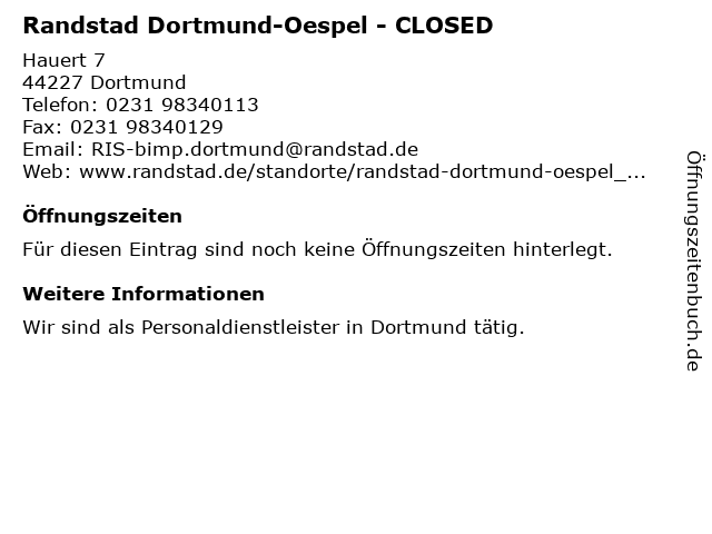 | Randstad Dortmund-Oespel - CLOSED anrufen | |