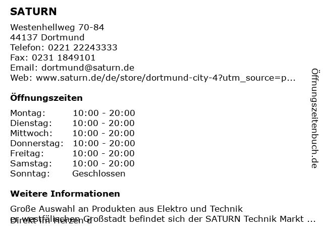 Öffnungszeiten SATURN in Dortmund anzeigen | |