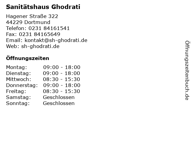| Öffnungszeiten Sanitätshaus Ghodrati in Dortmund anzeigen | |