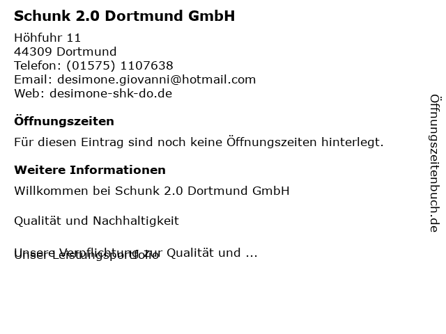 | Schunk 2.0 Dortmund GmbH anrufen | |