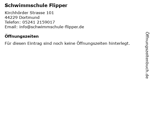 | Öffnungszeiten Schwimmschule Flipper in Dortmund anzeigen | |