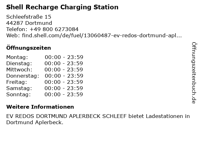 Telefonnummer Shell Recharge Charging Station in Dortmund (+49 800 6273084) anrufen