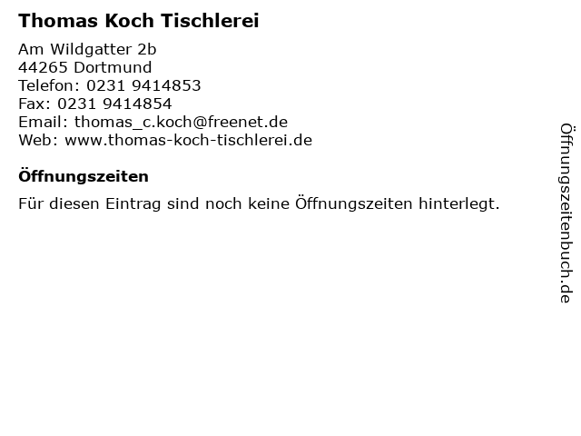 | Öffnungszeiten Thomas Koch Tischlerei in Dortmund anzeigen | |
