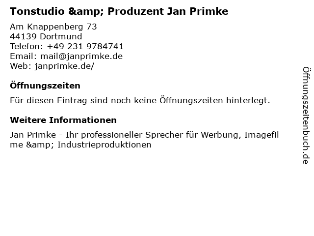 | Tonstudio & Produzent Jan Primke anrufen | |