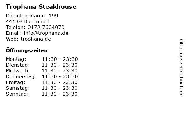 | Öffnungszeiten Trophana Steakhouse in Dortmund anzeigen | |