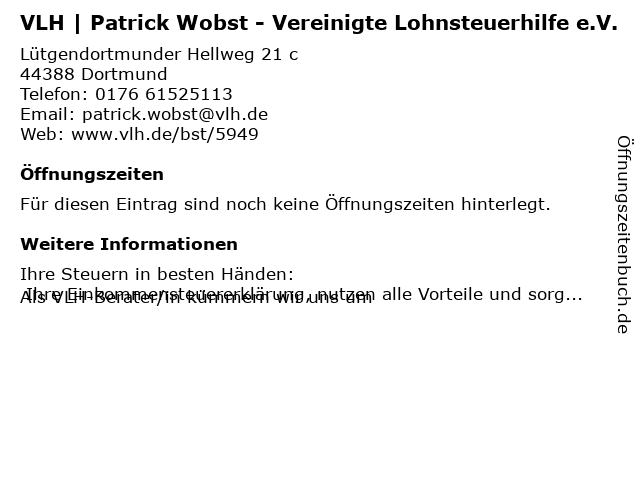 | VLH | Patrick Wobst - Vereinigte Lohnsteuerhilfe e.V. anrufen | |