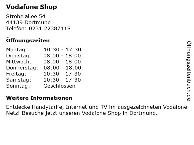 | Öffnungszeiten Vodafone Shop in Dortmund anzeigen | |
