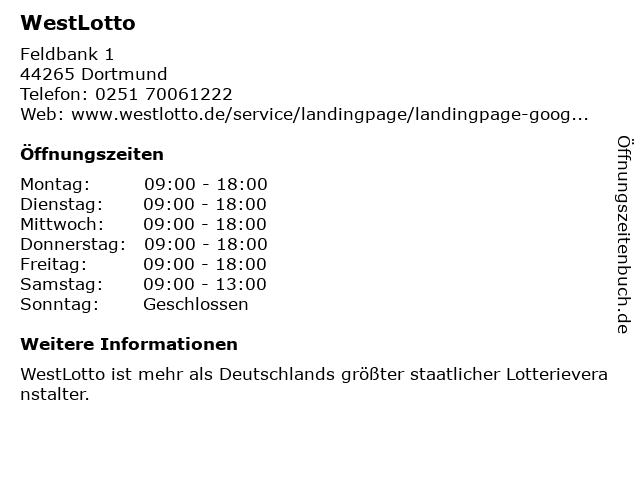 WestLotto in Dortmund | Telefonnummer, Öffnungszeiten und Adresse