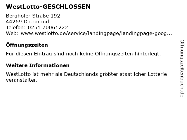 Öffnungszeiten WestLotto-GESCHLOSSEN in Dortmund anzeigen