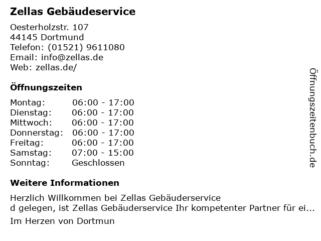 Öffnungszeiten Zellas Gebäudeservice in Dortmund anzeigen | |