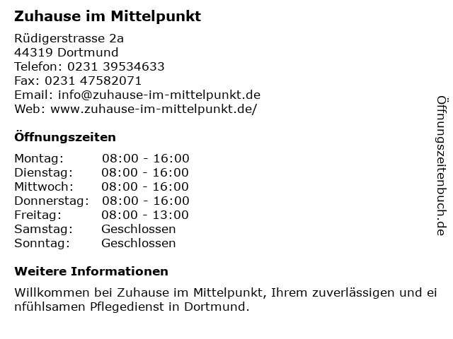 | Öffnungszeiten Zuhause im Mittelpunkt in Dortmund anzeigen | |
