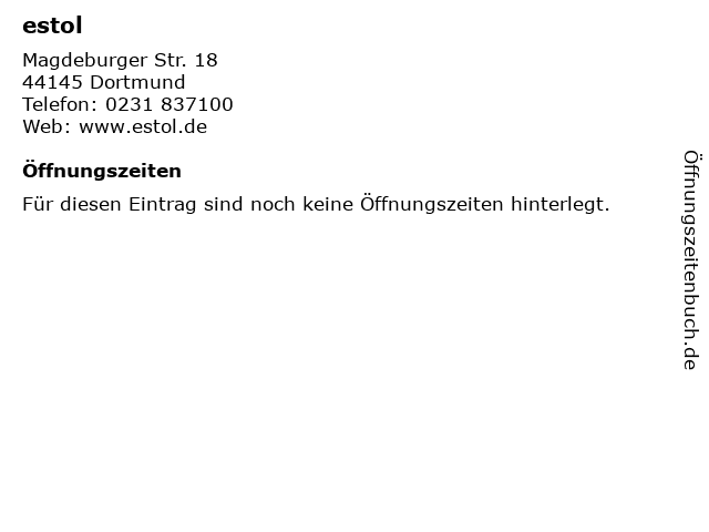 Öffnungszeiten estol in Dortmund anzeigen | |