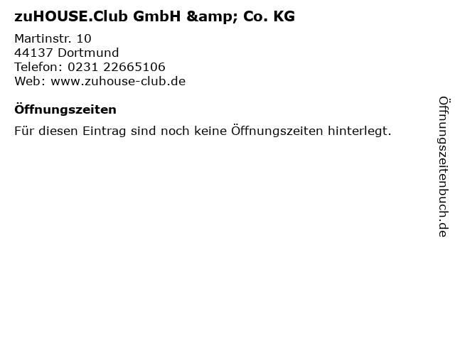 | Adresse zuHOUSE.Club GmbH & Co. KG in Dortmund anzeigen |