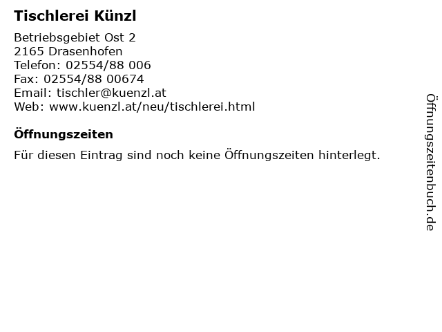 | Öffnungszeiten Tischlerei Künzl in Drasenhofen anzeigen | |