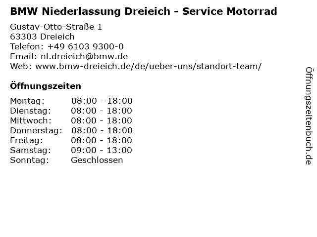 2 BMW Niederlassung - Service PKW (Entfernung: 0,02 km) Gustav-Otto-Straße 1, 63303 Dreieich - Sprendlingen 3 BMW Niederlassung Dreieich - Showroom (Entfernung: 0,02 km) Gustav-Otto-Straße 1, 63303 Dreieich-Sprendlingen 4 Hoffmann Umzugsfachspedition GmbH Niederlassung Dreieich (Entfernung: 0,76 km) Otto-hahn-straße 36, 63303 Dreieich 6 PSA Retail GmbH Niederlassung Rhein-Main, Standort Neu-Isenburg (Entfernung: 2,28 km) Schleussnerstraße 96-98, 63263 Neu-Isenburg |