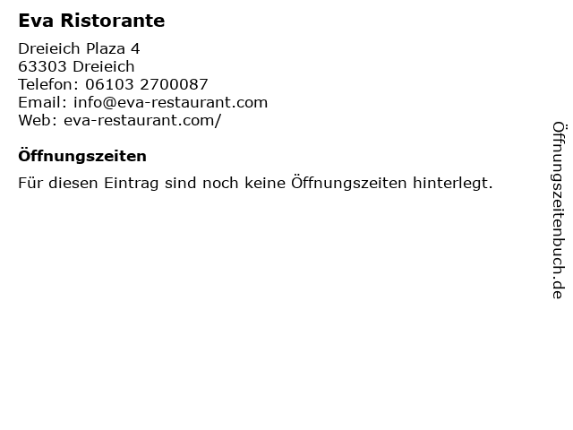 | Öffnungszeiten Eva Ristorante in Dreieich anzeigen | |