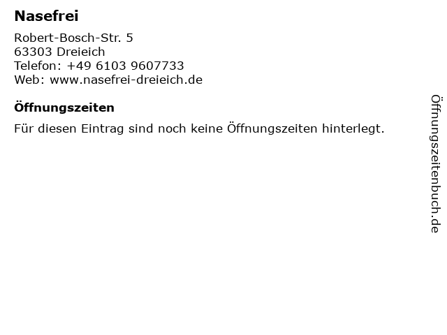 | Öffnungszeiten Nasefrei in Dreieich anzeigen | |