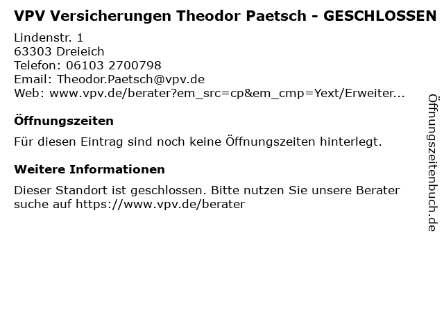 | VPV Versicherungen Theodor Paetsch - GESCHLOSSEN anrufen | |