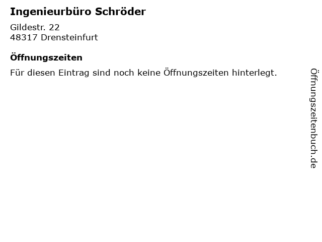 | Öffnungszeiten Ingenieurbüro Schröder in Drensteinfurt anzeigen | |