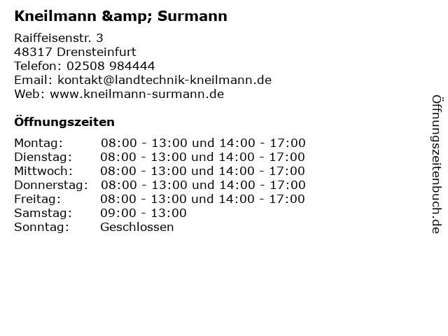 | Öffnungszeiten Kneilmann & Surmann in Drensteinfurt anzeigen | |