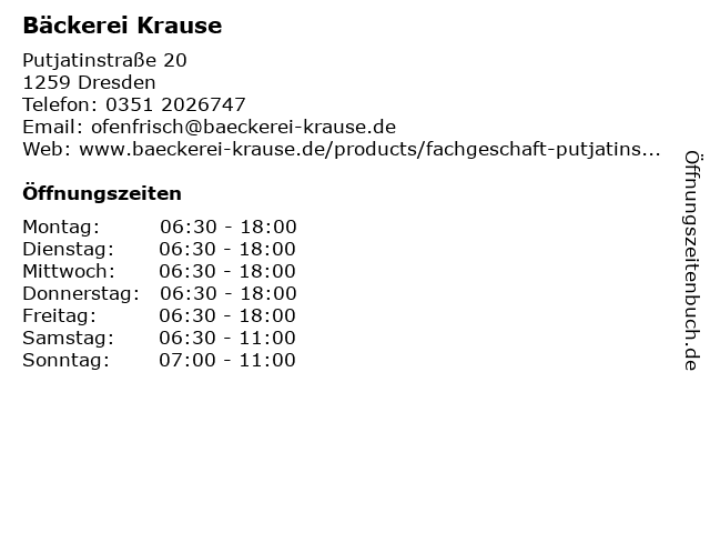 | Öffnungszeiten Bäckerei Krause in Dresden anzeigen | |