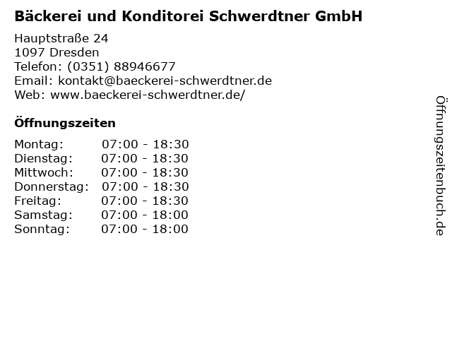 6 Bäckerei und Konditorei Schwerdtner GmbH (Entfernung: 4,18 km) Chemnitzer Straße 119-121, 01187 Dresden |