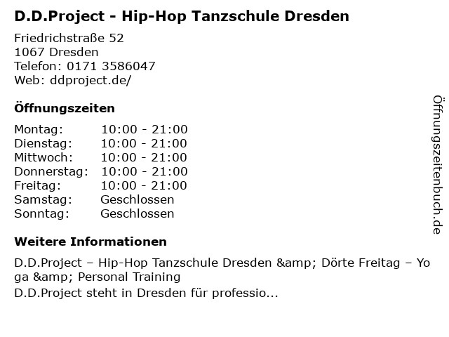 Branchen & Suchbegriffe zu D.D.Project - Hip-Hop Tanzschule Dresden:d.d.project, hip, hop, tanzschule, yoga-studios |