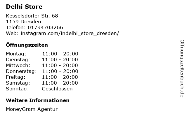 | Öffnungszeiten Delhi Store in Dresden anzeigen | |