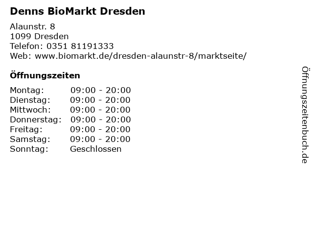 | Öffnungszeiten Denns BioMarkt Dresden in Dresden anzeigen | |