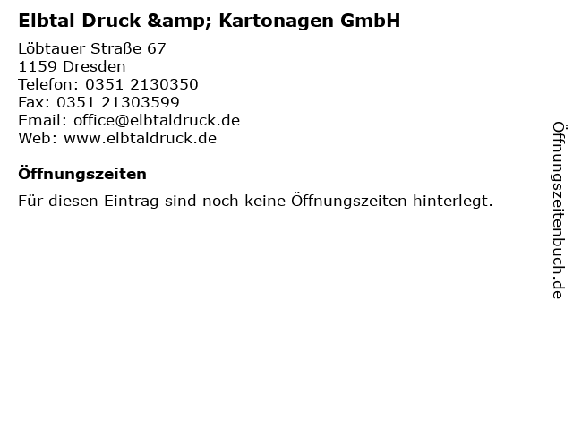 | Elbtal Druck & Kartonagen GmbH anrufen | |