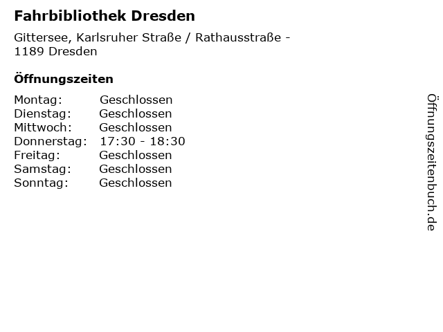 | Öffnungszeiten Fahrbibliothek Dresden in Dresden anzeigen | |