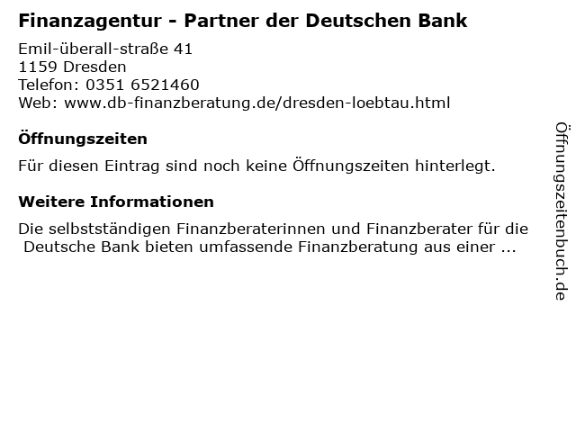 | Finanzagentur - Partner der Deutschen Bank anrufen | |