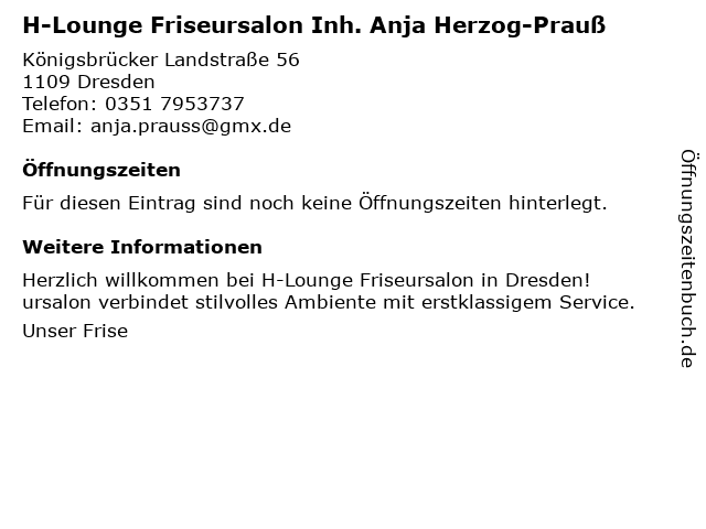 | H-Lounge Friseursalon Inh. Anja Herzog-Prauß anrufen | |