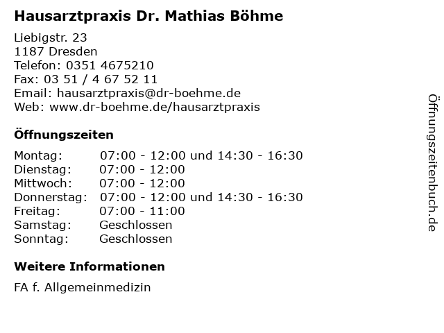 Hausarztpraxis Dr. Mathias Böhme in Dresden | Telefonnummer, Öffnungszeiten und Adresse