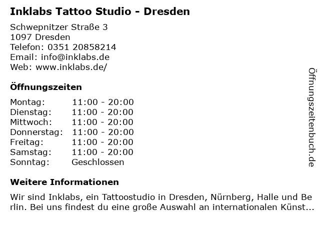 Branchen & Suchbegriffe zu Inklabs Tattoo Studio - Dresden:inklabs, studio, tattoo |