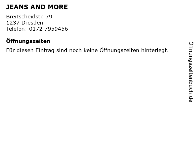 | Telefonnummer JEANS AND MORE in Dresden (0172 7959456) anrufen | |
