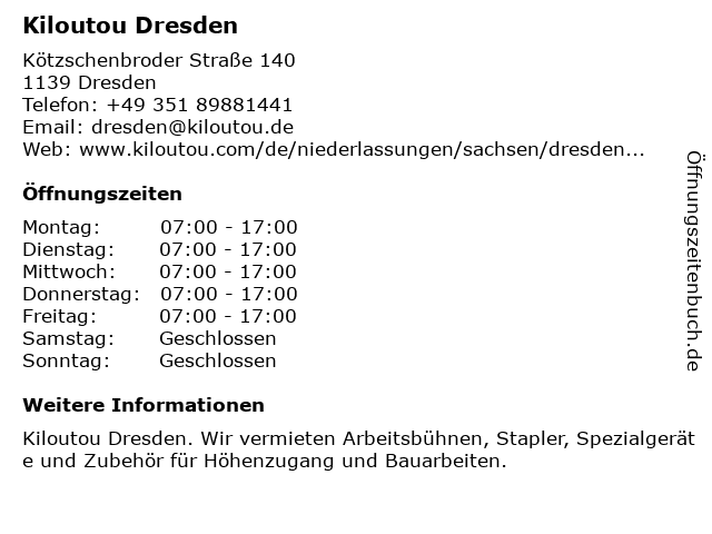 | Telefonnummer Kiloutou Dresden in Dresden (+49 351 89881441) anrufen | |