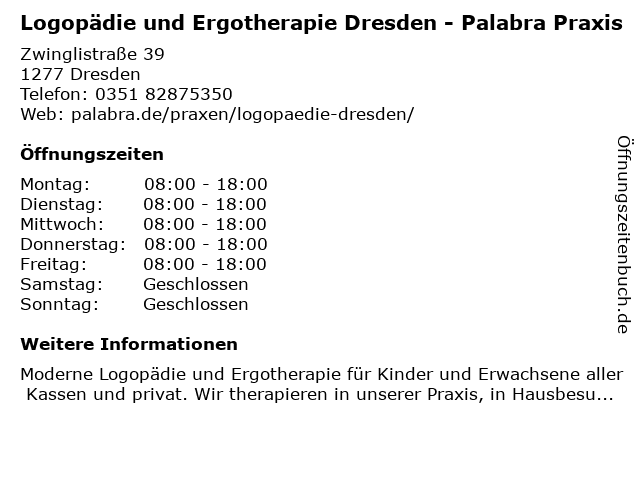 Branchen & Suchbegriffe zu Logopädie und Ergotherapie Dresden - Palabra Praxis:ergotherapie, logopädie, palabra, praxis |