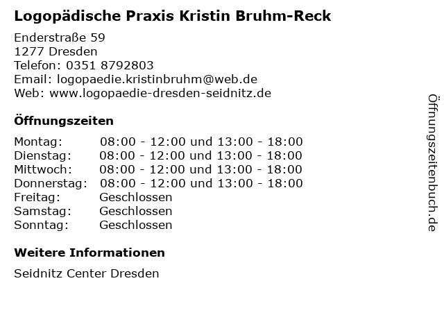 Branchen & Suchbegriffe zu Logopädische Praxis Kristin Bruhm-Reck:bruhm, center, kristin, logopäde, logopädie, logopädische, praxis, reck, seidnitz |