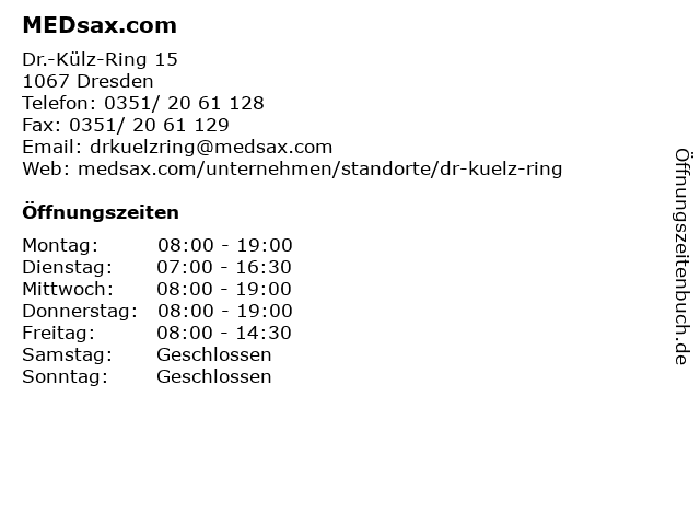 | Öffnungszeiten MEDsax.com in Dresden anzeigen | |