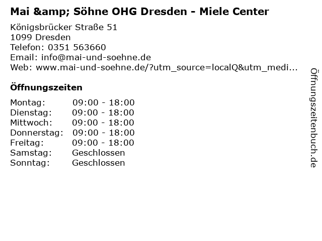 Branchen & Suchbegriffe zu Mai & Söhne OHG Dresden - Miele Center:center, fachgeschäft für elektroteile, haushaltsgeräte, mai, miele, söhne |