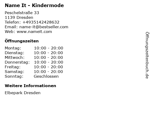 Öffnungszeiten Name It - Kindermode in Dresden anzeigen | |